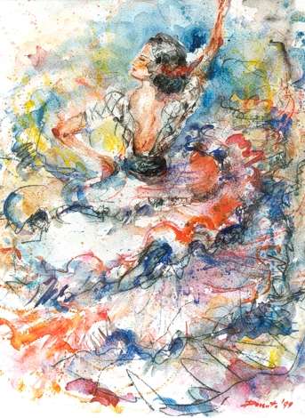 TITLE (Titel): The Carmen (Carmen) MEDIUM (Technik): Watercolor, crayon (Aquarell, Pastell) SIZE (Format): 73 x 95 cm with passepartout DATE (Datum): 1999 PRICE (Preis): Euro 990,- APDS199903